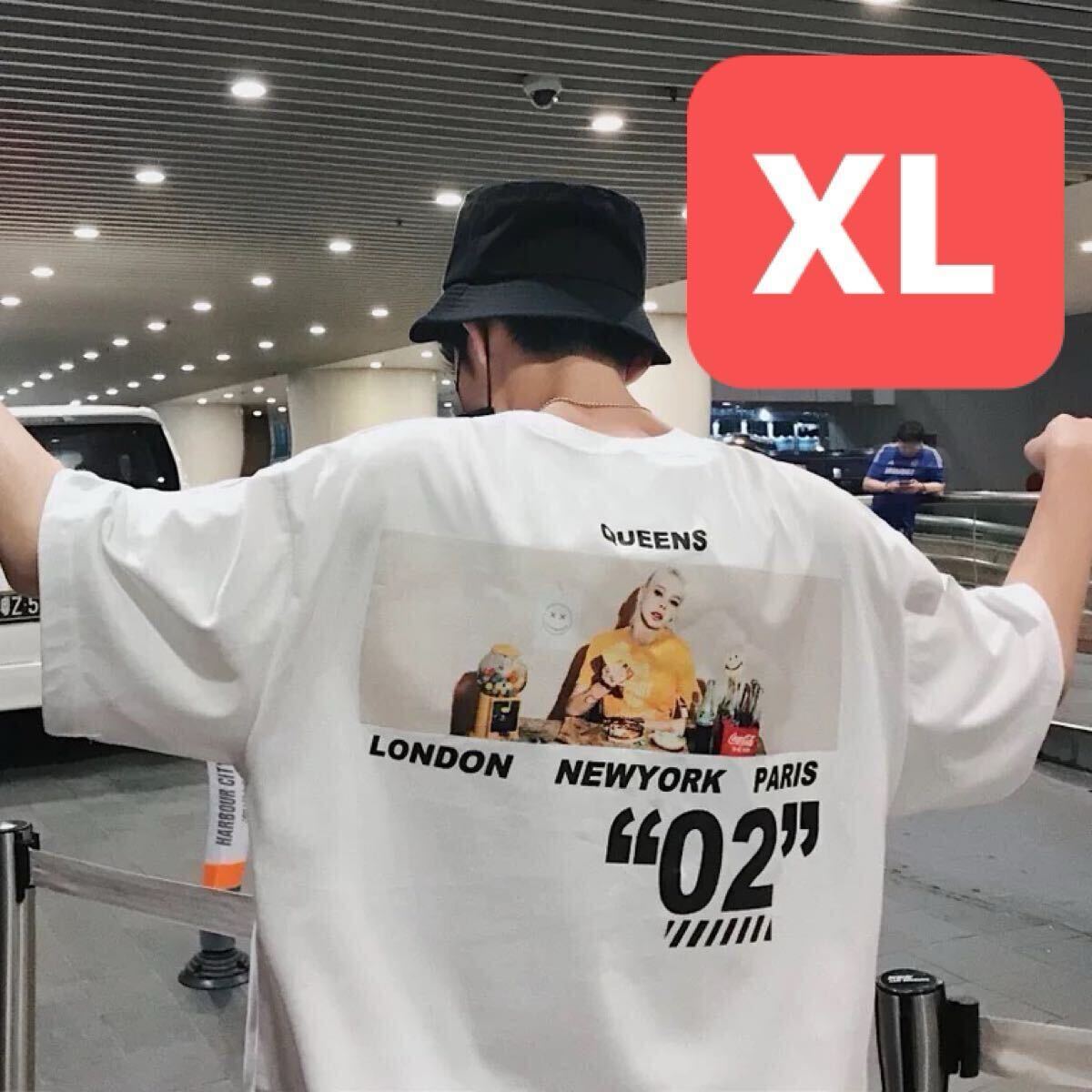 > ビッグシルエット プリント Tシャツ トップス シャツ カットソー 半袖 ストリート ビッグT トレンド ストリート レディース 白 ホワイト XL