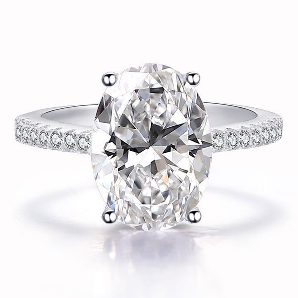 女性用925シルバーホワイトモアッサナイトリング、9×13mm、ウェディング