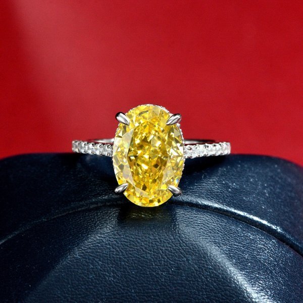 女性用925シルバーイエローモアッサナイトリング、9×13mm、ウェディング