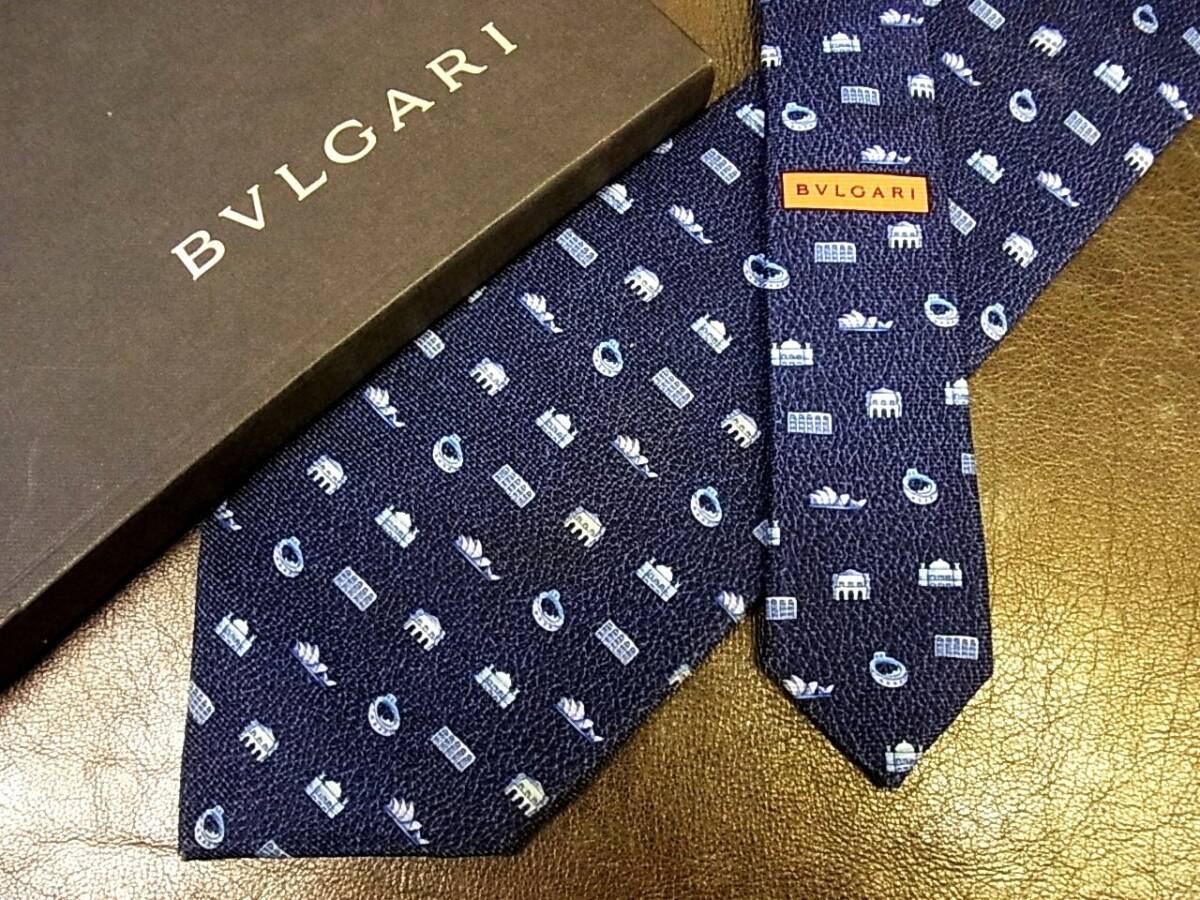 - ●bv2056●良品●【BVLGARI】ブルガリ 【世界遺産】「最高級セッテピエゲ」 ネクタイ