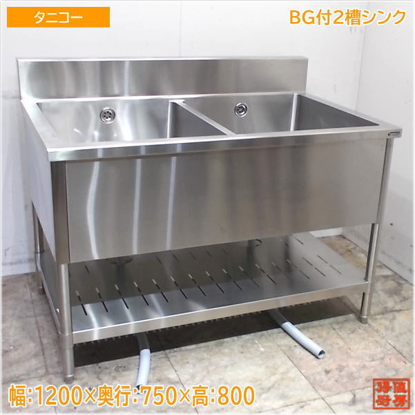 - タニコー ステンレス BG付2槽シンク 1200×750×800 業務用2層流し台 未使用厨房/24L2504Z
