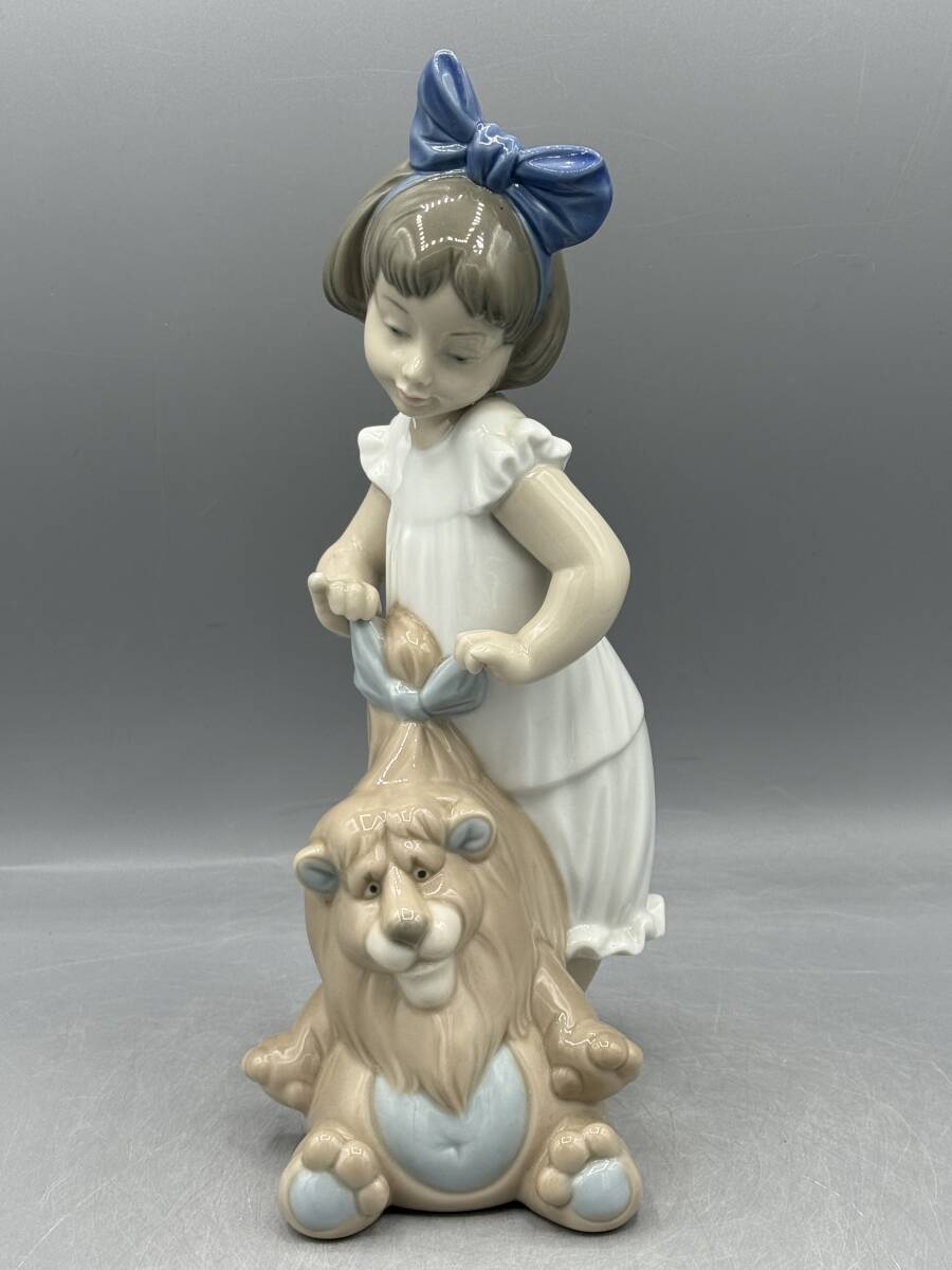> リヤドロ ナオ 女の子 ぬいぐるみ ライオン 1287フィギュリン スペイン 陶器 置物 陶磁器 陶磁器人形