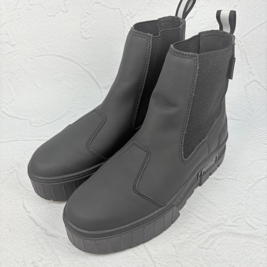 > 【美品】PUMA プーマ チェルシーブーツ 厚底 プルストラップ 黒 ブラック UK5 24cm ワーク カジュアル サイドゴアブーツ カジュアル