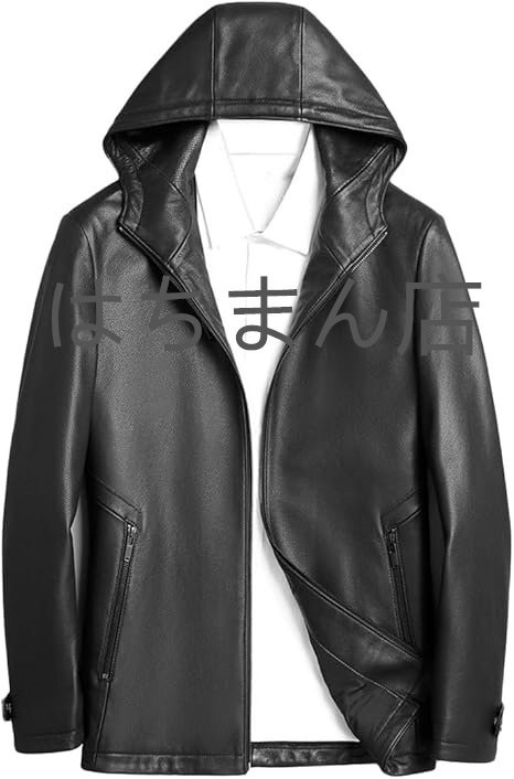 - フード付きレザージャケット メンズ 山羊革 ゴートスキン レザーパーカー ライダースジャケット フード付き 本革 ジャンパー 黒 L-5XL