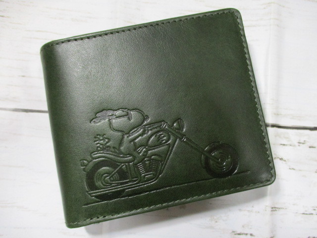 - 財布 メンズ 二つ折り スヌーピー ブランド 本革 new ライダー グリーン