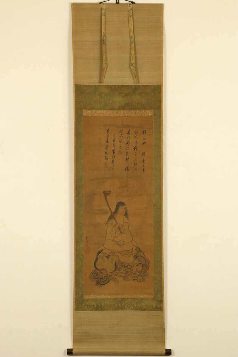 - 【真作 狩野探道極】掛軸「狩野安信画 木庵性瑫賛 文殊菩薩画賛」寛文元年安信49歳木庵51歳 江戸前期 狩野派 渡来禅僧 黄檗三筆 絵画