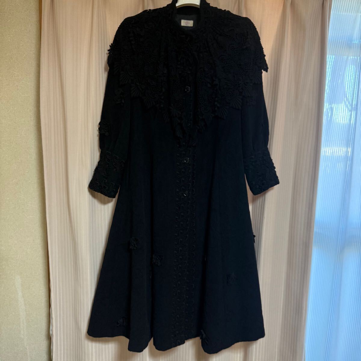 - 日本製 アトリエまりこ ロングコート ブラック kawaii へっぽこ先生 ノンノンドール