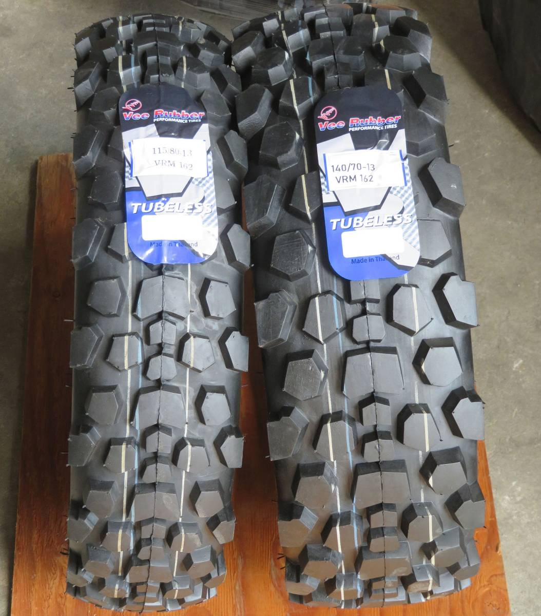 > 新品送料込スクーターブロックタイヤセット 115/80-13 140/70-13 VRM-162 Vee Rubber ビーラバー