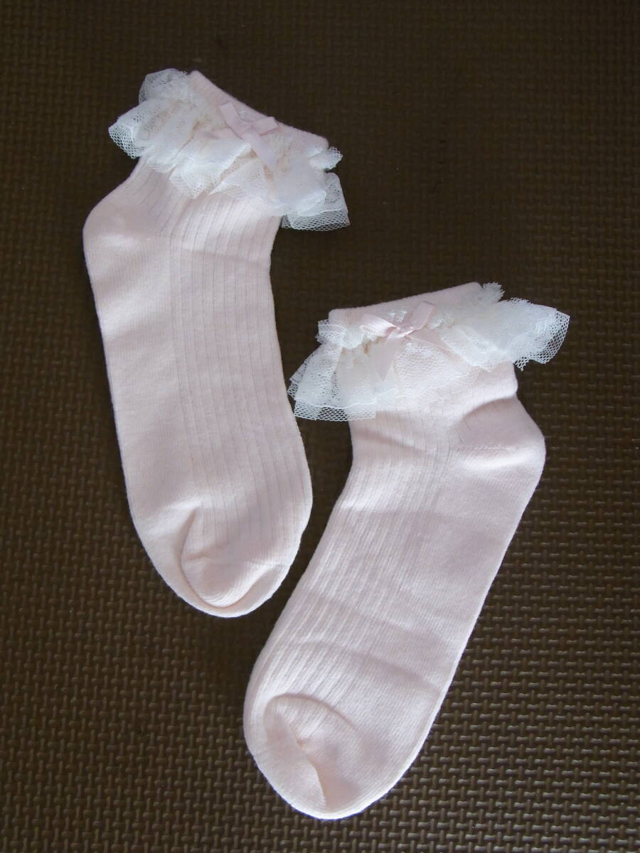 - ★美品★可愛いGIRL☆★薄いピンク色★リボン★レース★ソックス★靴下★サイズ22cm