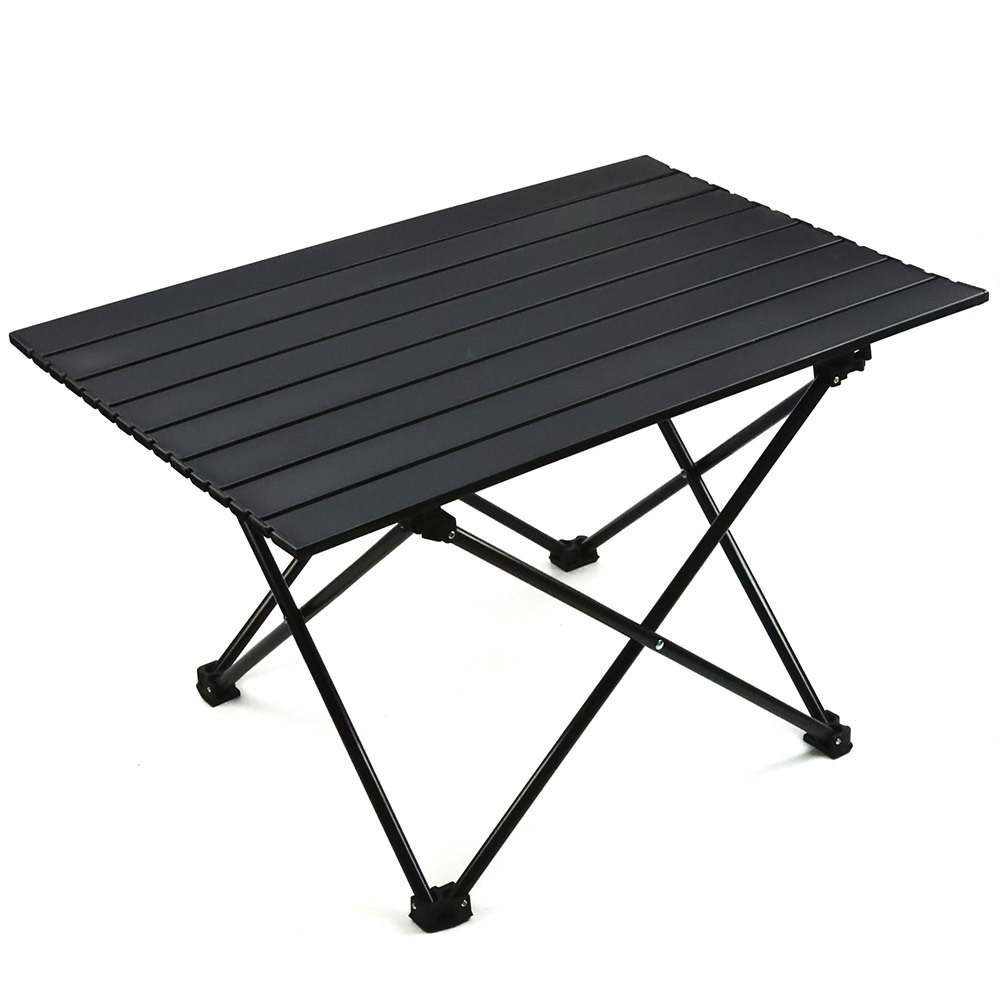 - 折りたたみキャンプテーブル69cm×47cm×42cm アウトドア用 ロールアップピクニックテーブル コンパクト収納 スチール製 25kg耐荷重 黒