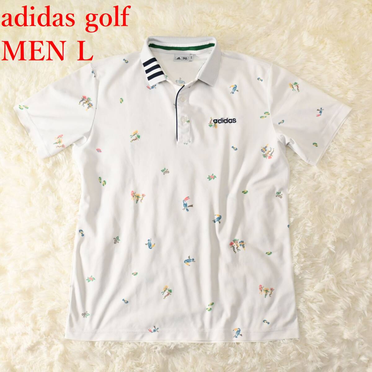 - U3 MEN L アディダスゴルフ 白地南国柄 半袖プルオーバー
