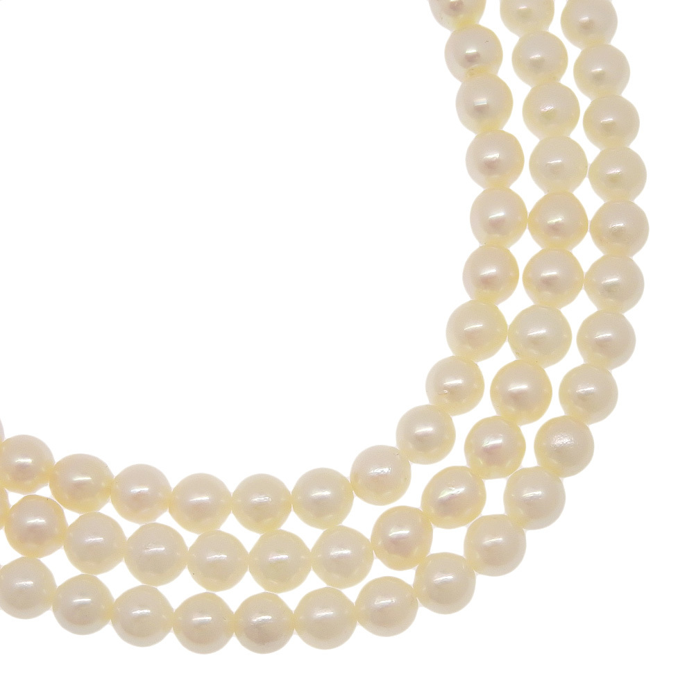 - 真珠 3連レイヤード ネックレス4.9~5.4mm パール×シルバー 約72.8g レディース【M202324029】中古