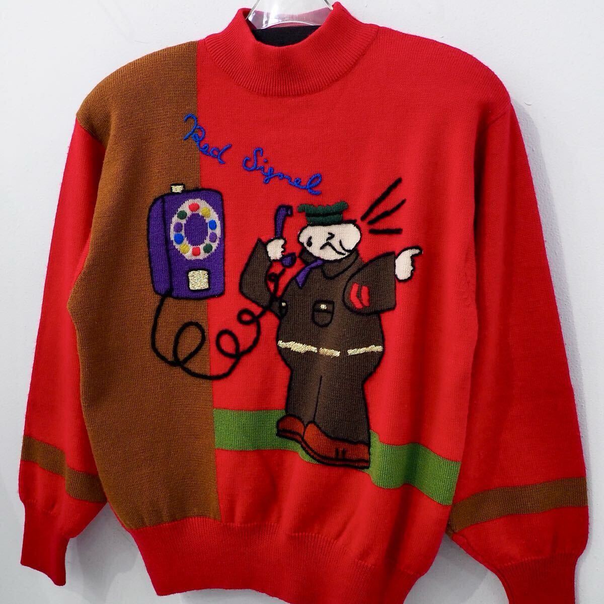 > 90s 00s ポルタヴェルデ 秋冬 ウール モックネック ニット 赤 レッド マスタード レディース S M L XL サイズ porta verde レトロ セーター