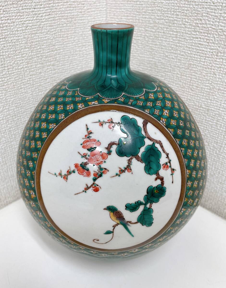 > 【 三ツ井詠一 色絵花鳥 飾壺】 九谷焼/花瓶/陶芸/骨董品/美術品/一輪挿し/銘有/A68-347