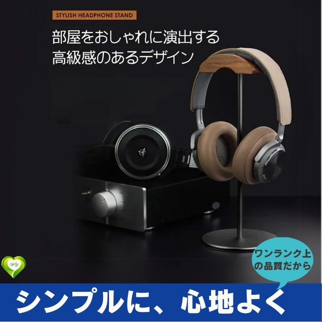 > 【シンプルに、心地よく】 ヘッドホンスタンド ヘッドホンハンガー 木製 天然木 上品 ウォールナット 3色展開 アルミ 収納 おしゃれ