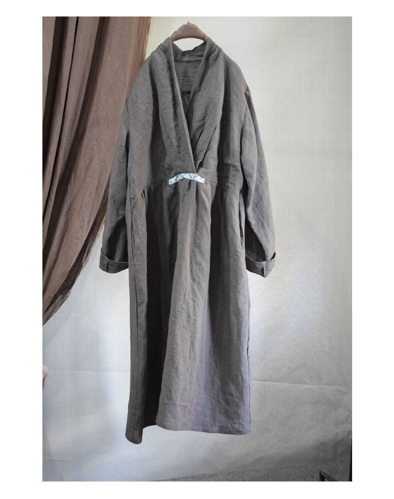 - 新入荷ワンピース 秋 チュニック 2重構造 麻100% ゆったり アンティーク風 グレー