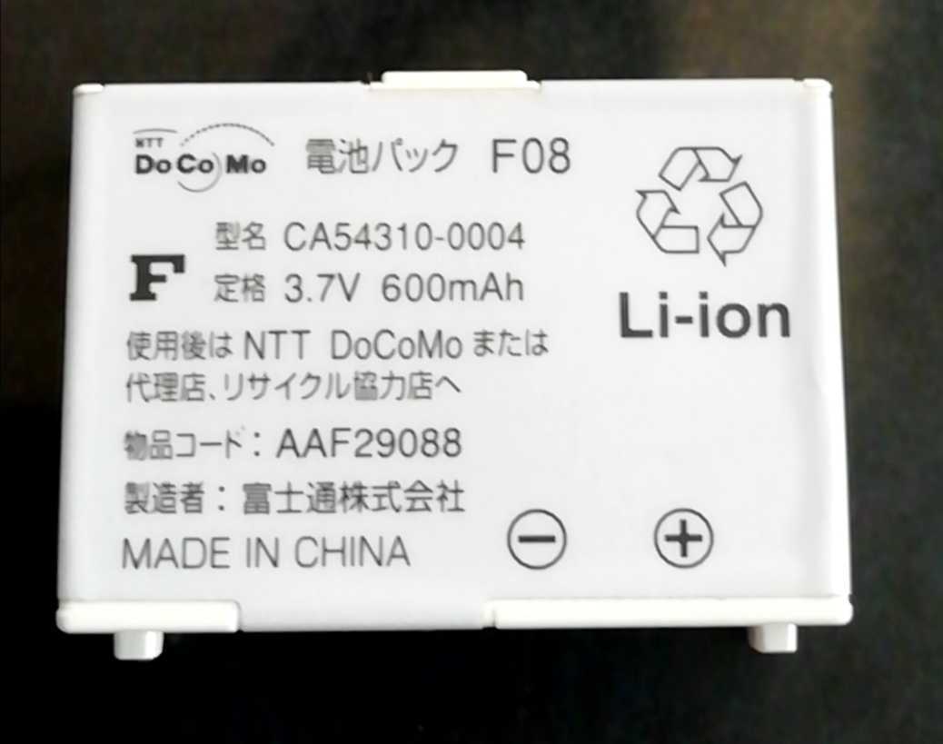 - 【中古・残り1個】NTTドコモF08純正電池パックバッテリー【充電確認済】対応機種(参考)F702iD/F703i/F704i