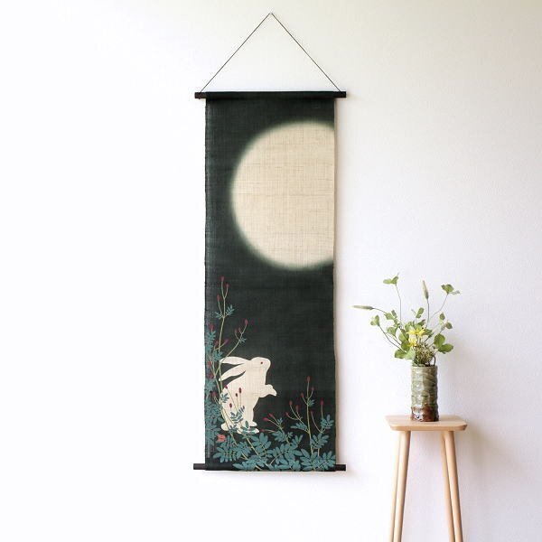 - タペストリー おしゃれ 壁掛け 和風 麻 縦長 手描きタペストリー 月あかりうさぎ 送料無料(一部地域除く) wlj5684