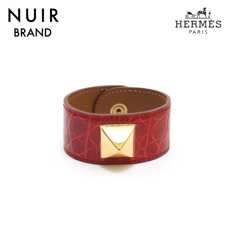 - エルメス HERMES ブレスレット メドール リザード G金具 ブレスレット バングル ゼラニウム