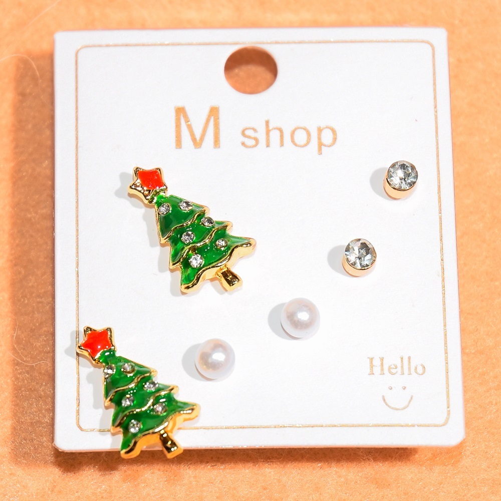 - ★クリスマスピアス3点セット★クリスマスツリー★ストーンピアス★パールビーズピアス★スタッドピアス★新品★A57