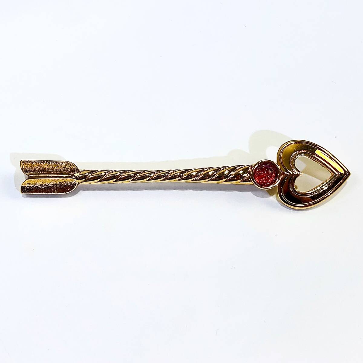 - Christian Dior クリスチャン ディオール ハート 矢 モチーフ カラーストーン ブローチ GP ゴールド レディース アクセサリー 美品
