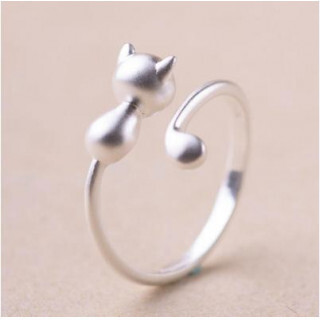 - 097 シルバー925 かわいい ネコ リング レディース 指輪 マットシルバー