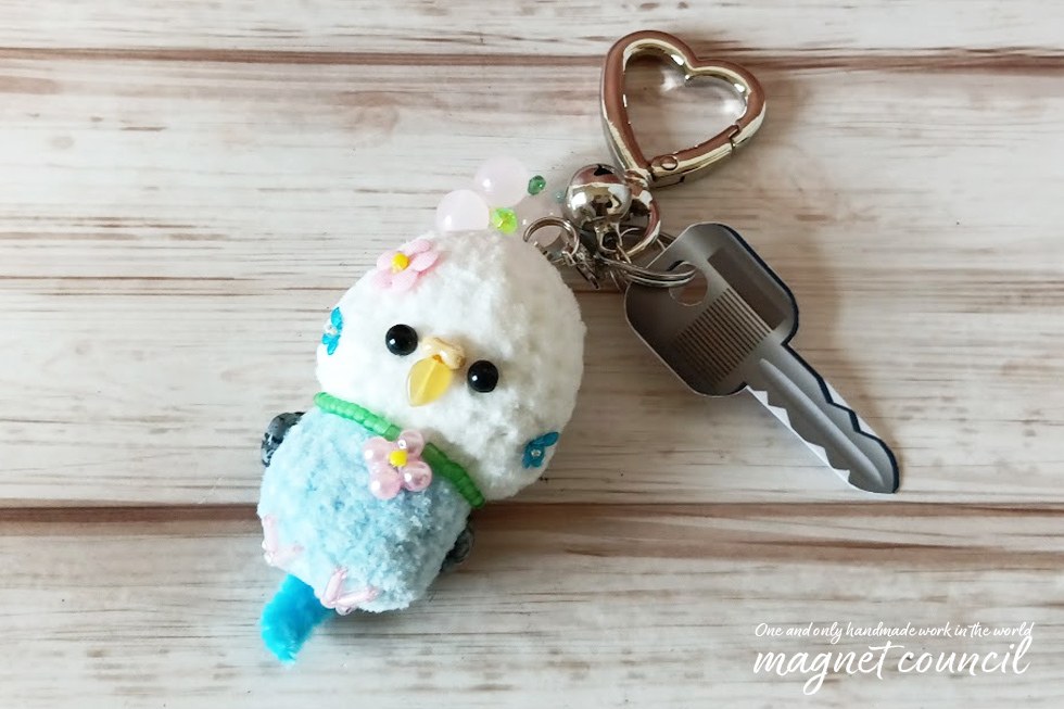 - ::ハンドメイド::あみぐるみ * キーホルダー「ゆらりん♪セキセイインコちゃん」A * 送料無料 * 1点物!::