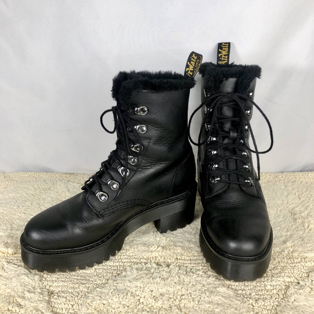- 美品★Dr.Martens★24.0cm相当 ドクターマーチン レオナ ショートブーツ レディース 本革 黒色 ブラック ブーツ 革靴 ファー S105