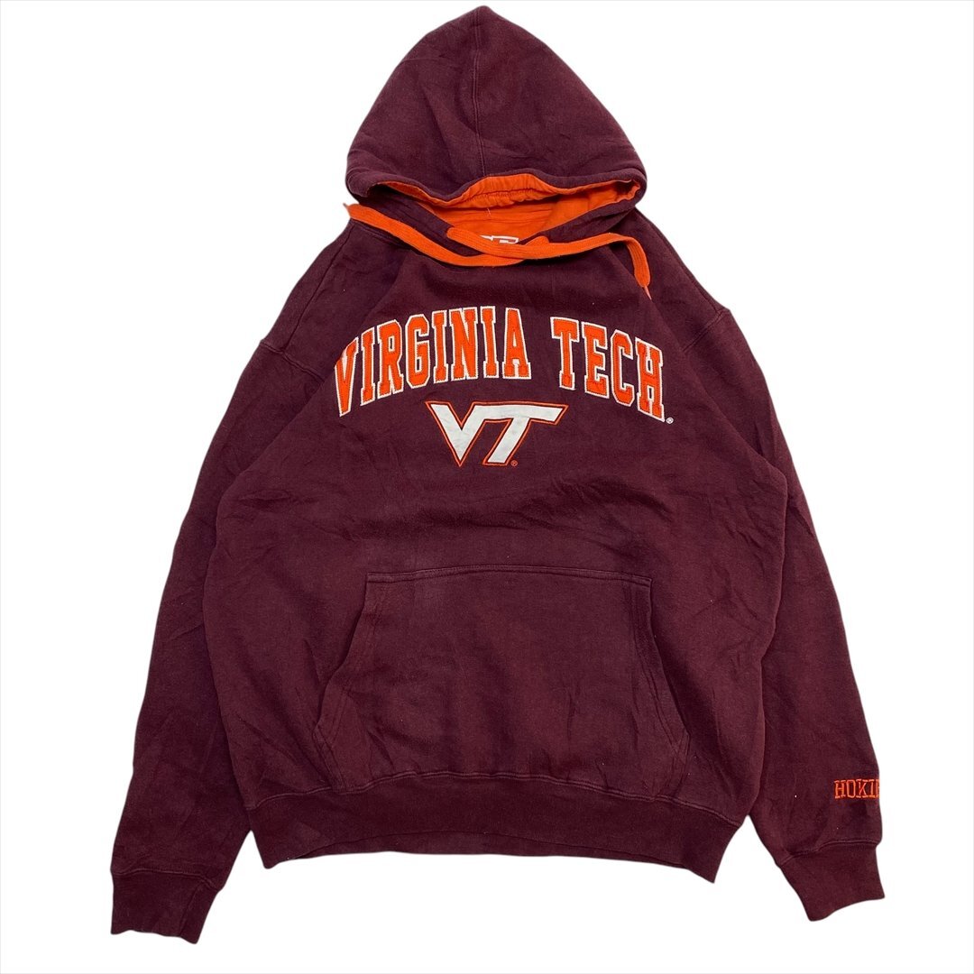 - バージニア工科大学 パーカー ワインレッド 古着 メンズ M カレッジスウェット 刺繍 クリーニング済み