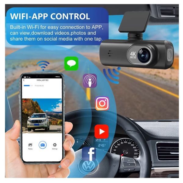 - ドライブレコーダー 4K画質 WiFi :スマホなどに映像 Gセンサー衝撃録画 角度調整可 ★鄭AV