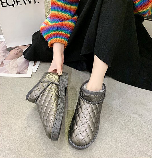 - ☆レディース ムートンブーツ ショートブーツ 冬靴 シューズ 定番靴 グレー 24cm