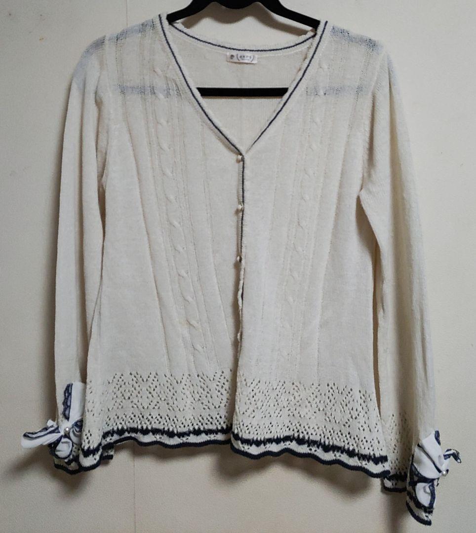 - 909◆袖リボンライン入りカーデ 生成り キナリ axes femme アクシーズ ファム SK161X35