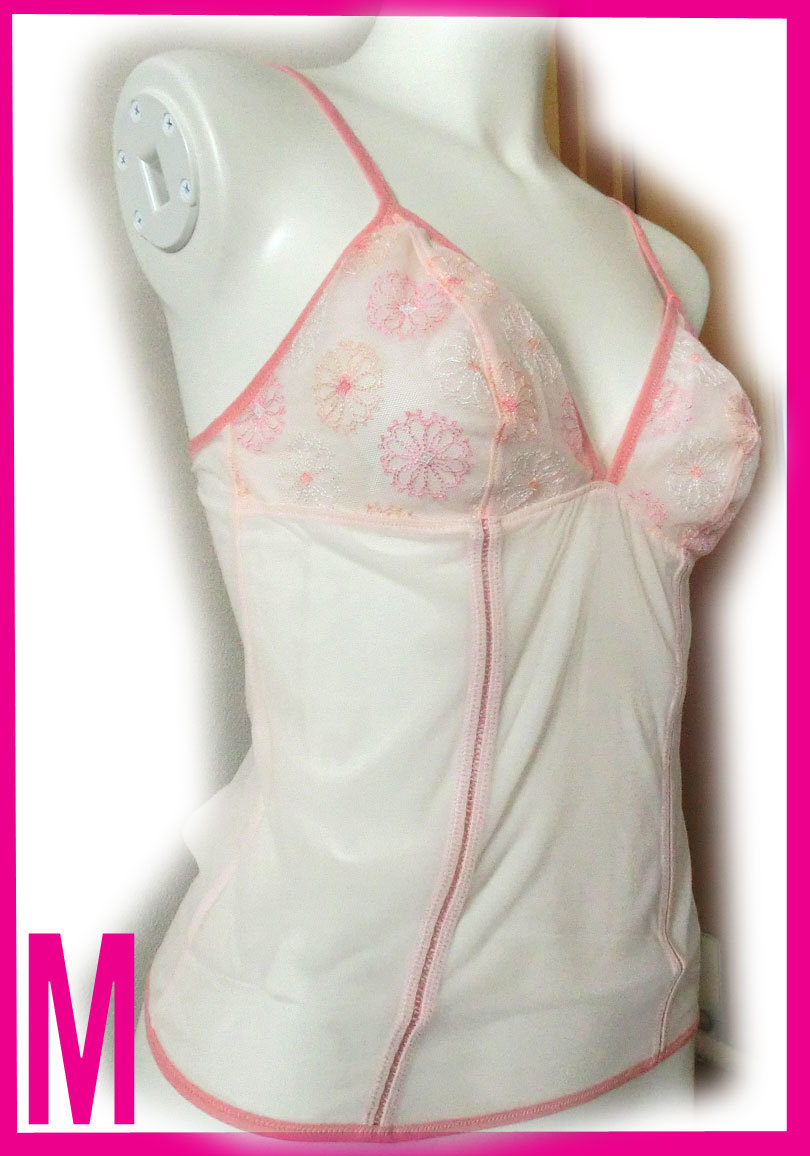 - 2 トリンプ Triumph M 79-87cm ピンク系? 10200049 AMST1231 CAMI JX モザイクレース キャミソール ショート丈 透け感 高級キャミ