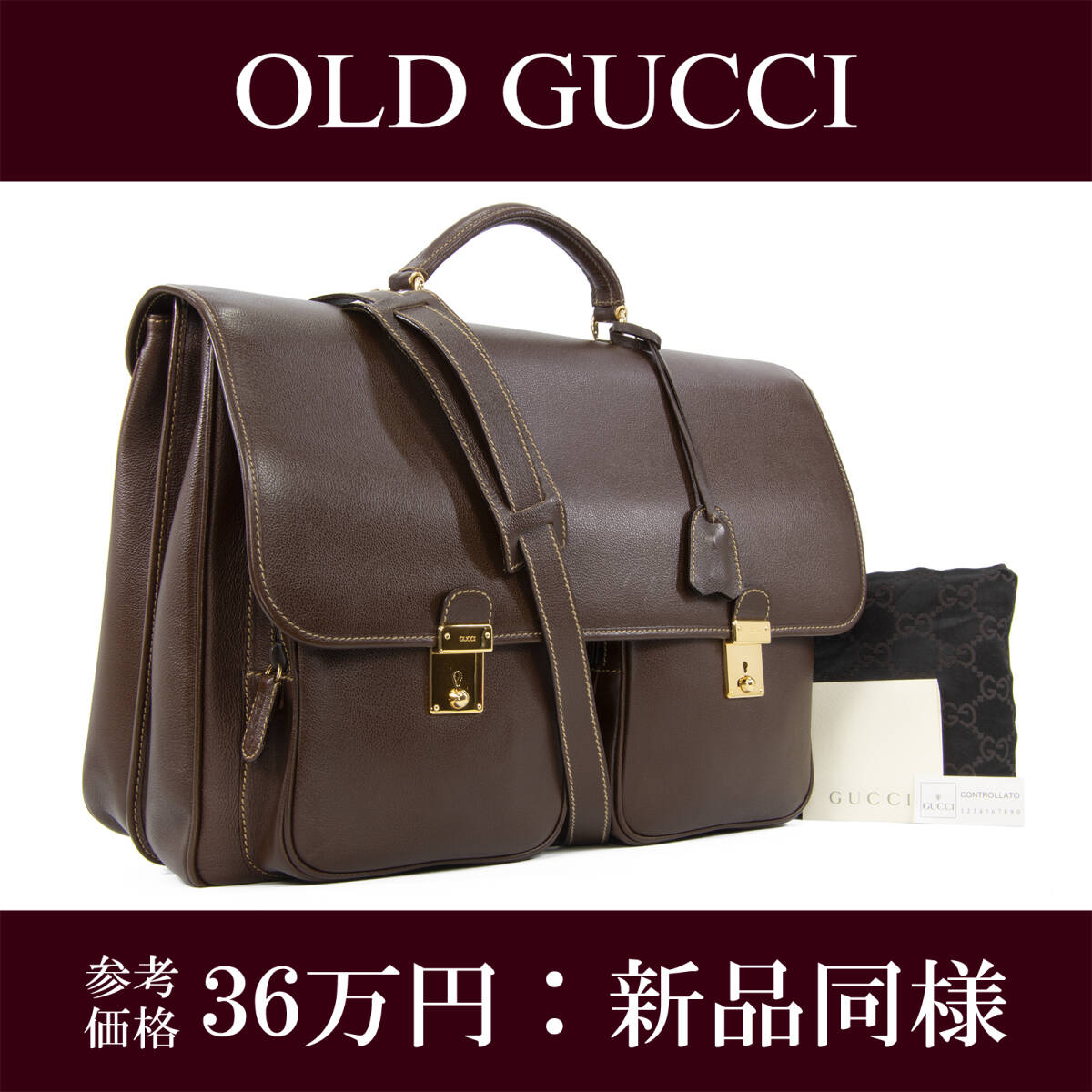 > 本物 送料無料 オールドグッチ 2WAYショルダーバッグ 新品同様 ビジネスバッグ メンズ レディース 茶色 レア 最高級 ロゴ 鞄 バック I208