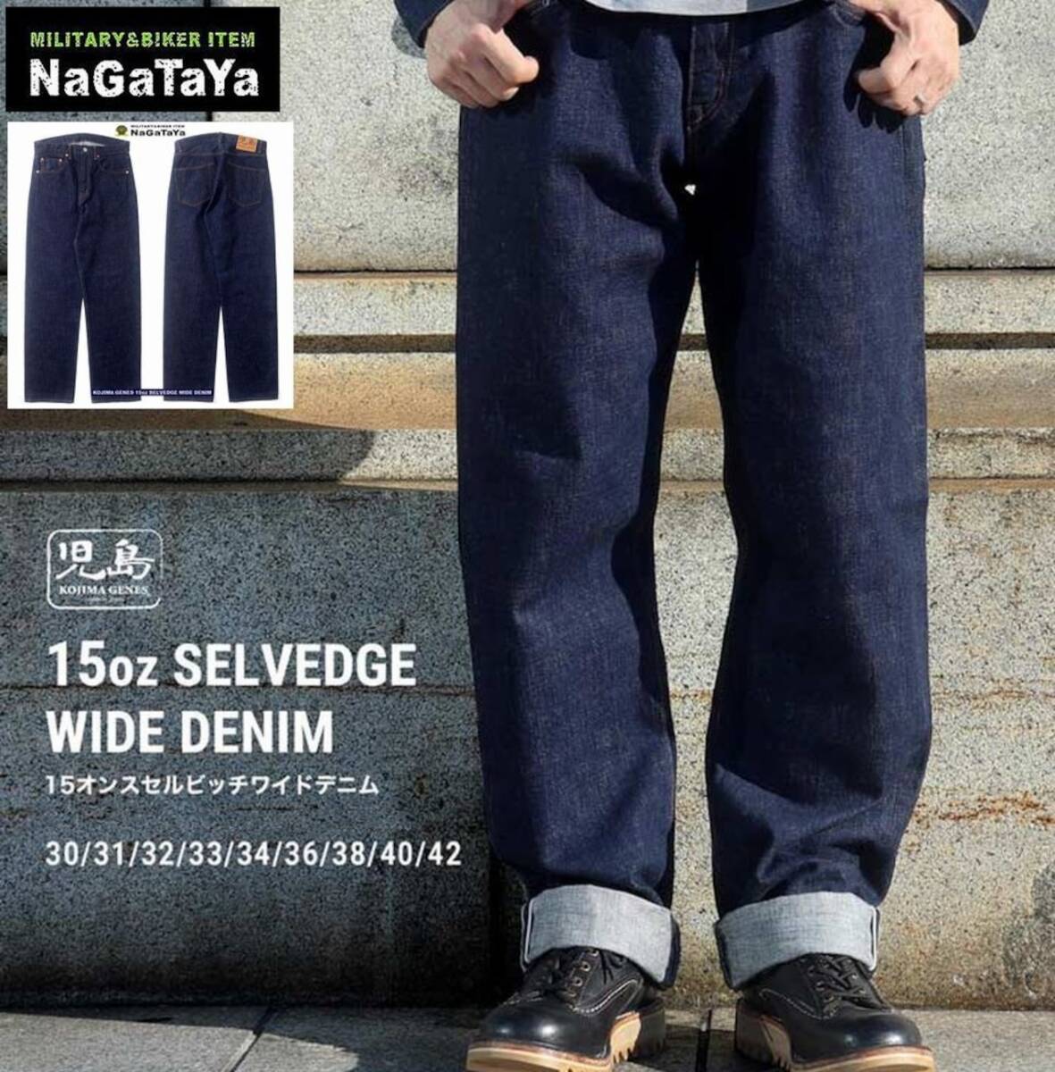 - 児島ジーンズ KOJIMA GENES 15oz セルビッチ ワイドデニム インディゴブルー 33インチ RNB102W 日本製 MADE IN JAPAN