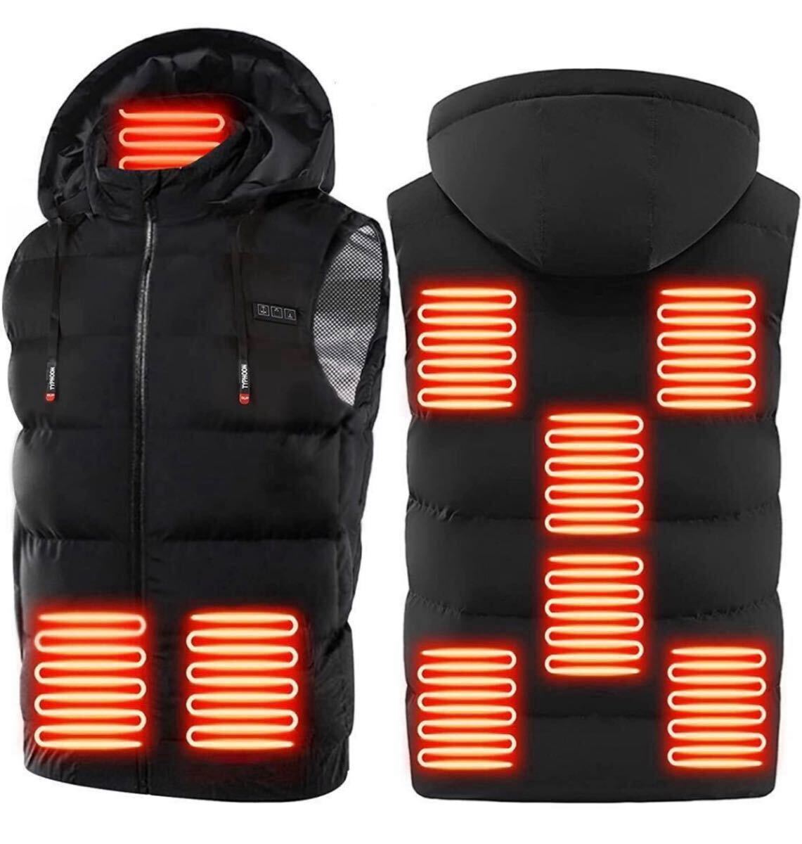 - USB充電式保温防寒対策電熱ベスト加熱ベストヒートジャケット取り外し可能な帽子Sサイズ