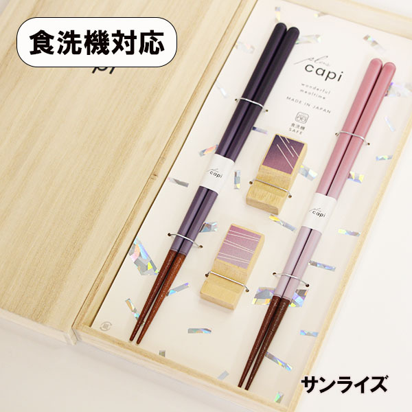 > 夫婦箸 箸置き セット 食洗機対応 木製 サンライズ 桐箱 木箱 capi Gift お箸 おしゃれ 日本製 国産 箸セット ギフト プレゼント