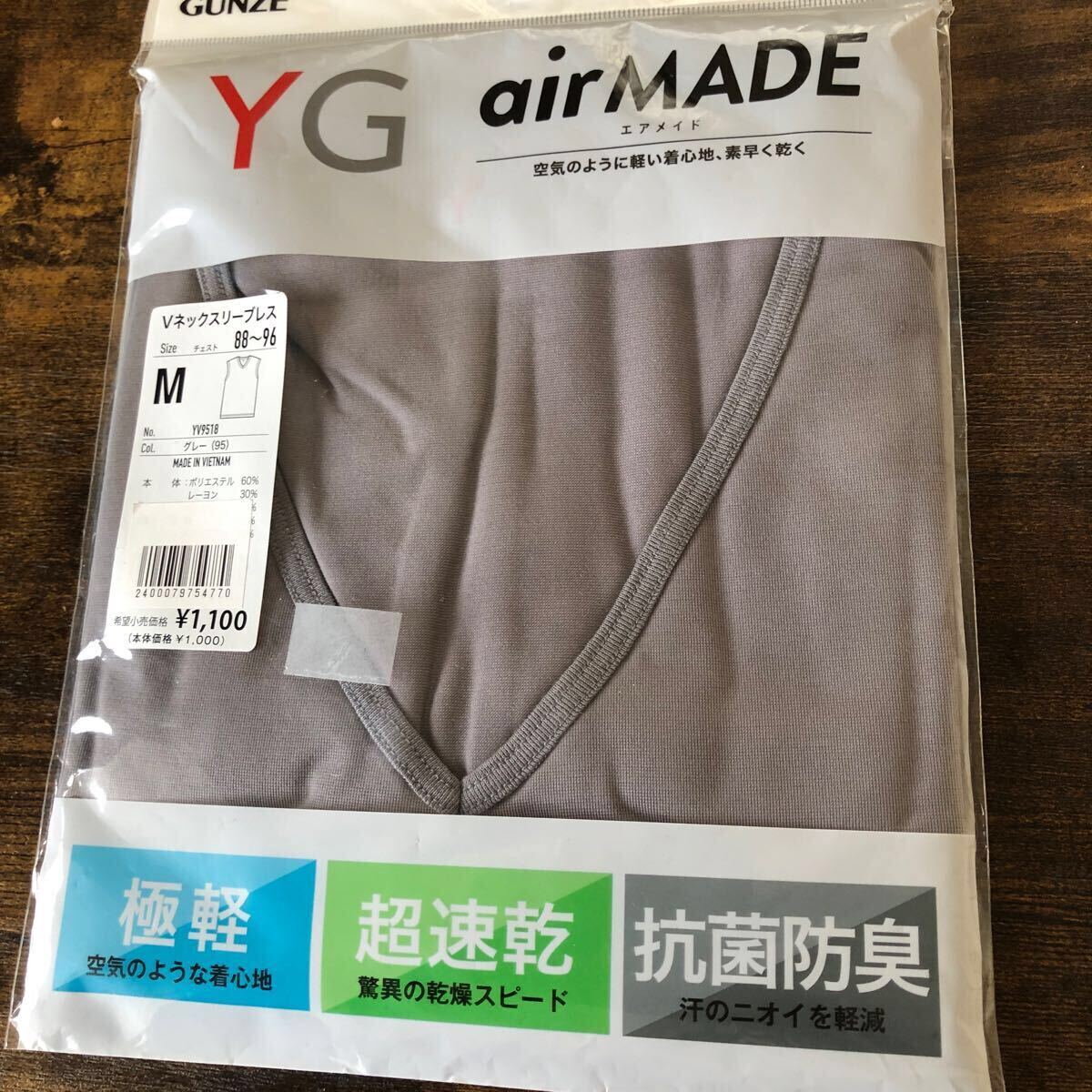 - グンゼ エアメイド Vネックスリーブレス M グレー