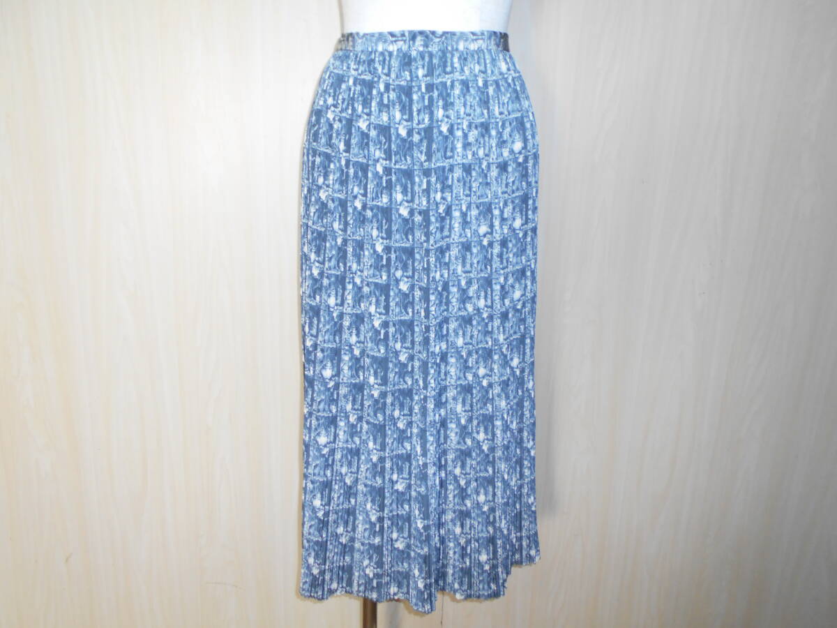 > b506◆PEYTON PLACE アコーディオン プリーツスカート◆ペイトンプレイス ウエスト実寸60cm程 総柄 グレー系 ミモレ丈 ポリエステル