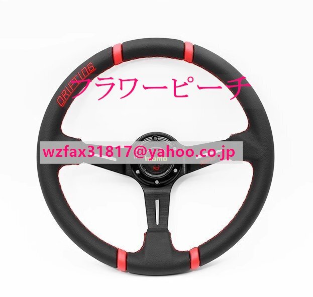 - 新品! 車ハンドル ステアリング スポーツステアリングホイール ドリフト momo風 350mm(14インチ) 高さ10cm PU素材 レース専用