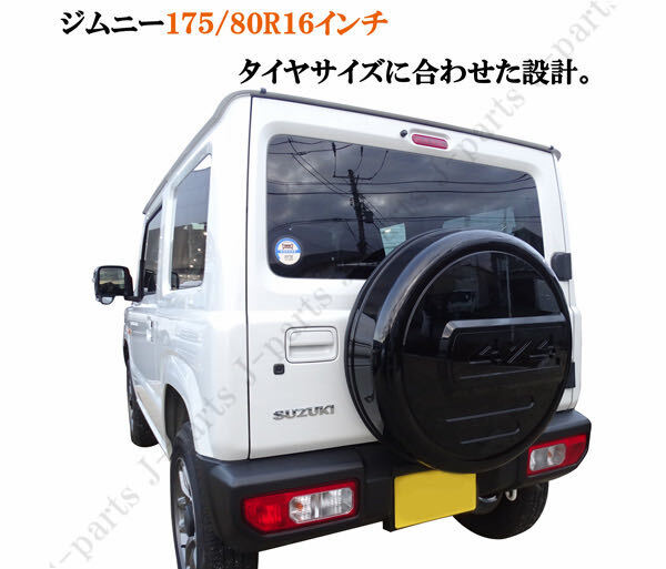 - 商品製造工場動画付!スズキジムニーJB23 JB64 175/80R16インチ 背面 スペアカバー ハードタイプ 艶あり黒 ピアノブラック 4X4プレート付