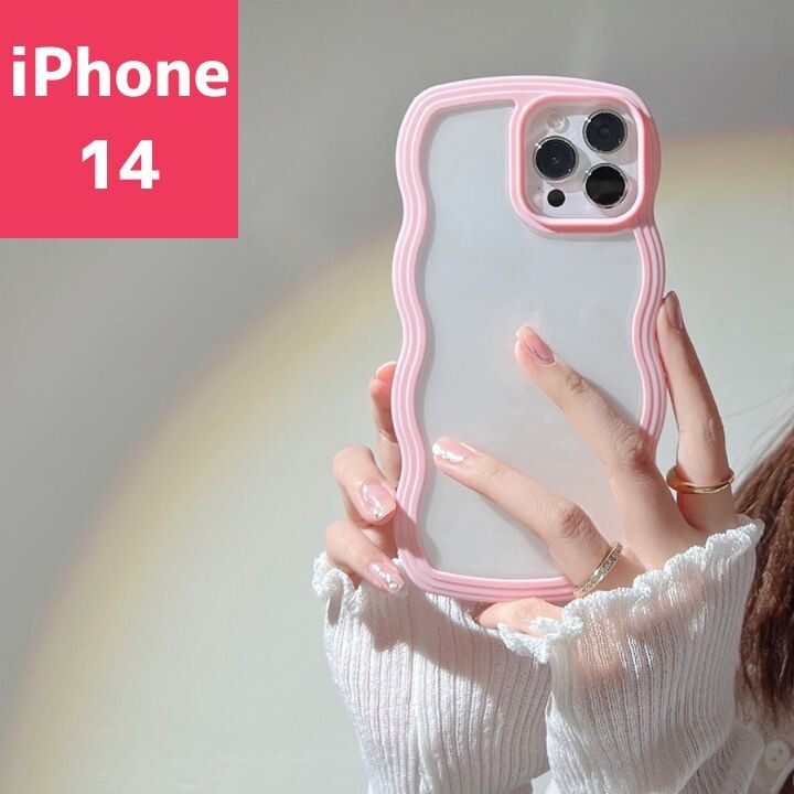 > iPhone14 スマホケース シンプル うねうね ウェーブ ピンク 人気