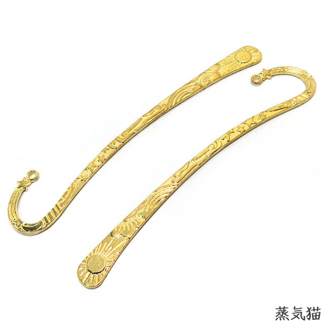 - c0587 宇宙Lブックマーカー ゴールド 3個【しおり 本 星 月 太陽 手作りチャーム 材料ハンドメイド用アクセサリーパーツ素材】蒸気猫パーツ