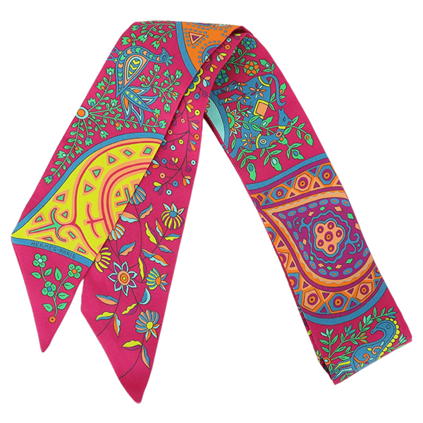 - エルメス ツイリー シルク 生命の木 フューシャピンク グリーン マルチカラー 772
