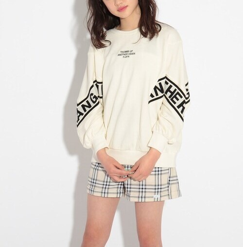 > 新品 PINK-latte ロゴジャカード袖切り替えトップス オフホワイト(003) 14(140cm) 定価3289円