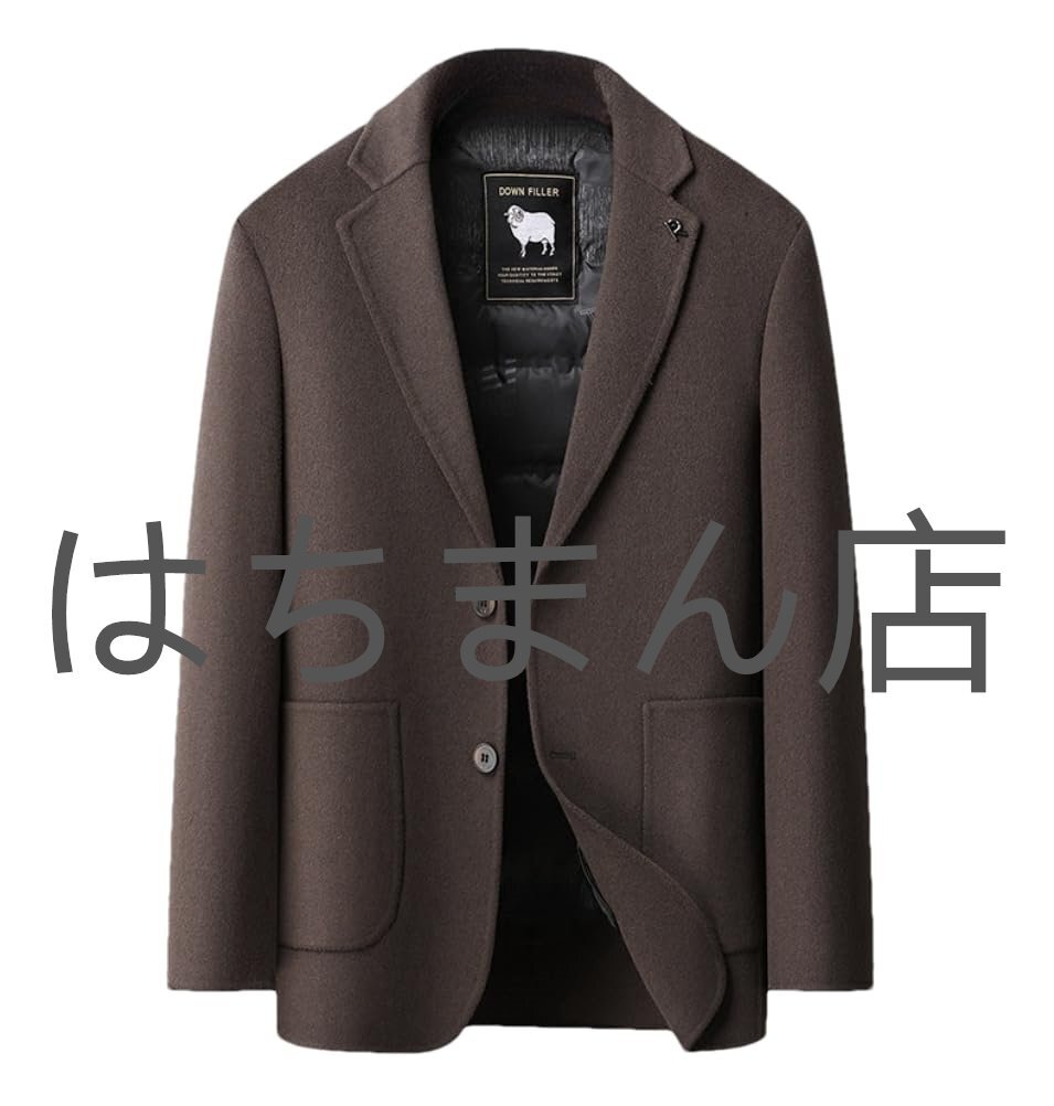 - ウールコート メンズ テーラードジャケット ガチョウダウン ジャケット スーツ 厚地 ライナー付き 暖かい 冬服 防寒着 ブラウン M-4XL