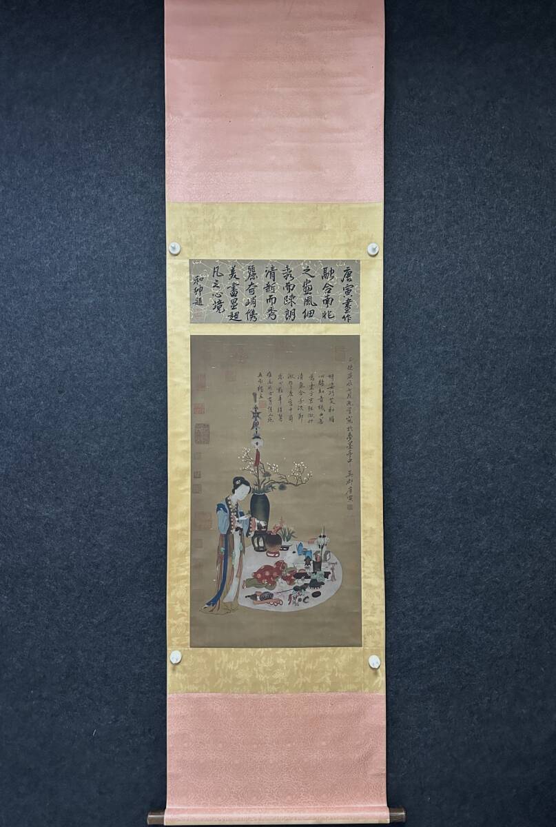 - 中国書画 掛け軸 中国・明時代 唐伯虎書 「加官晋爵」絹本立軸 書道巻物 真筆逸品 肉筆保証 唐物 古画 LOT-K437