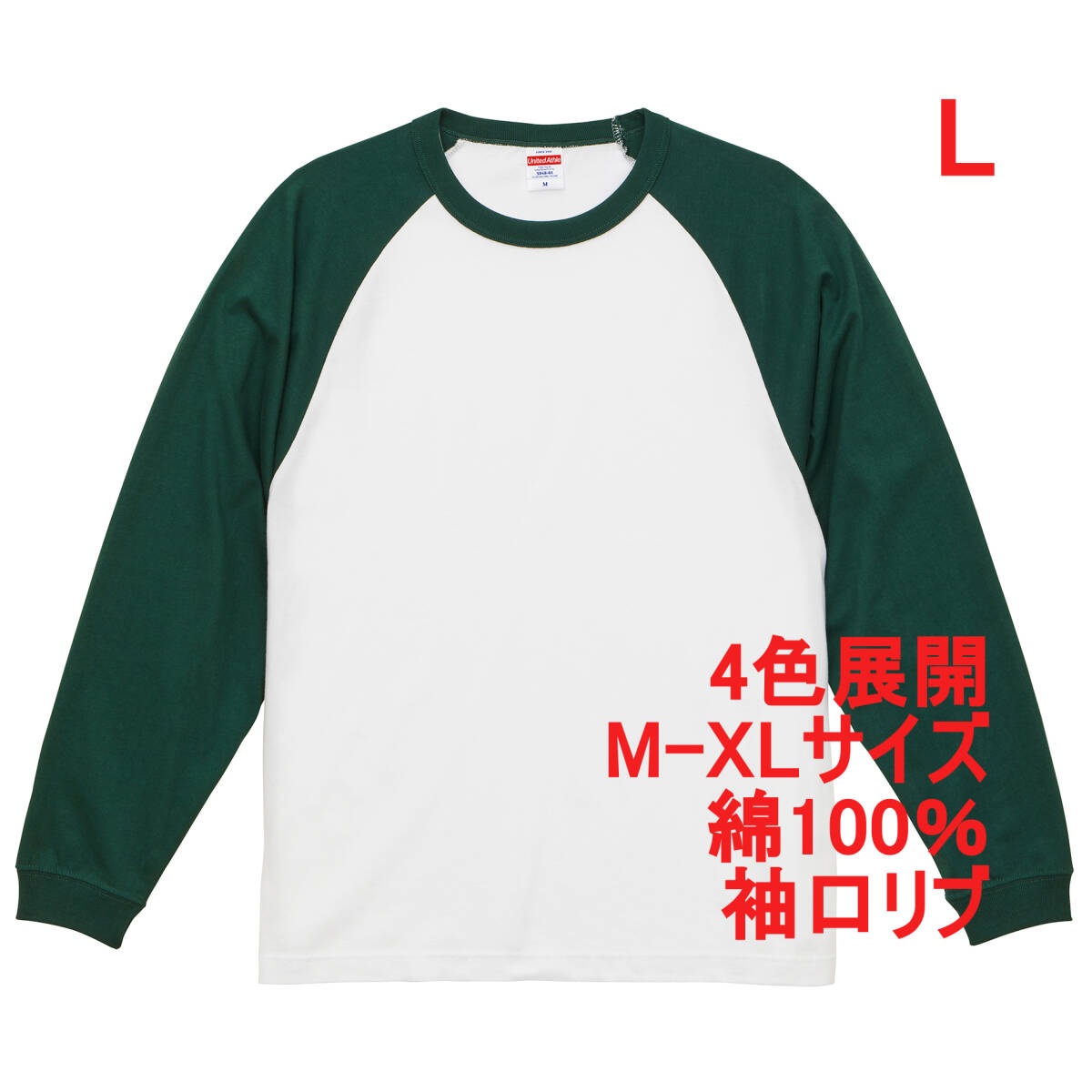- 長袖 Tシャツ L ホワイト アイビー グリーン ロンT 袖リブ 5.6オンス 綿100 無地 無地T ラグラン ロンティー A2084 白 白色 緑 緑色 504801