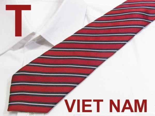 - 【ベトナムネクタイ】C 724 Tベトナム ネクタイ T VIET NAM 赤系レジメンタルストライプジャガード