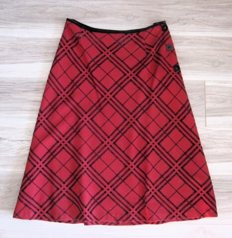 - ★ROPEロペ★ウール100%温かくて綺麗な赤いスカート★黒チェックラインスカート★Aライン★